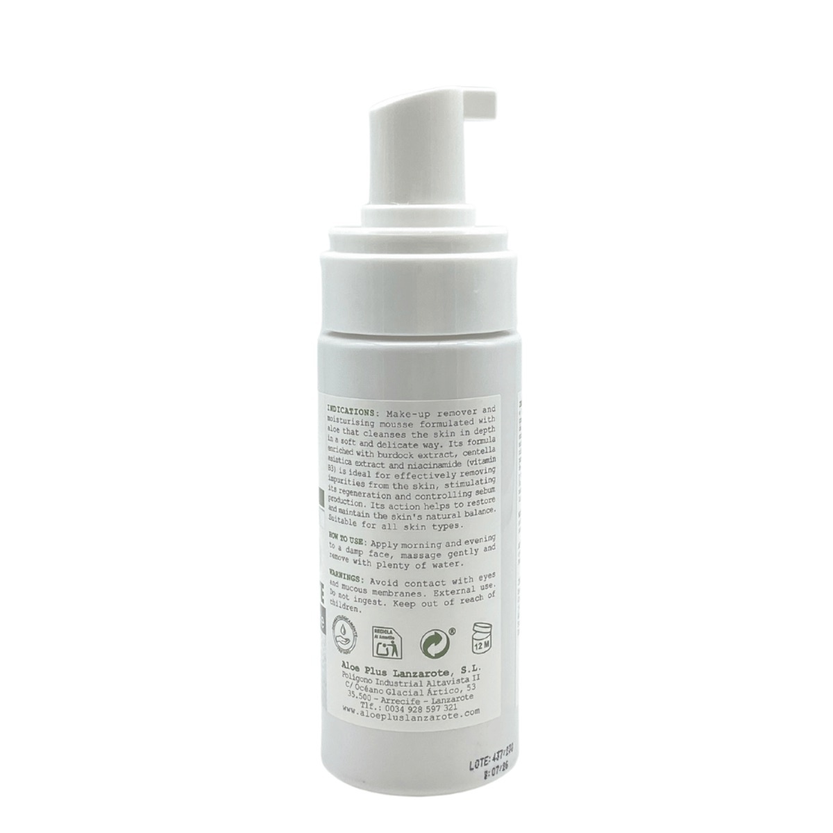 Abschminkendes und feuchtigkeitsspendendes Mousse auf der Basis von Aloe vera, das die Haut sanft und gründlich reinigt.