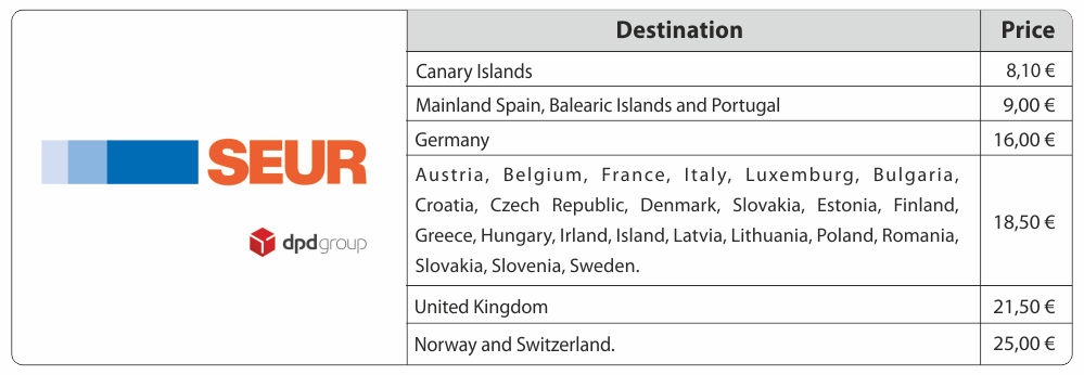 Currently all shipments are made through SEUR/DPD.