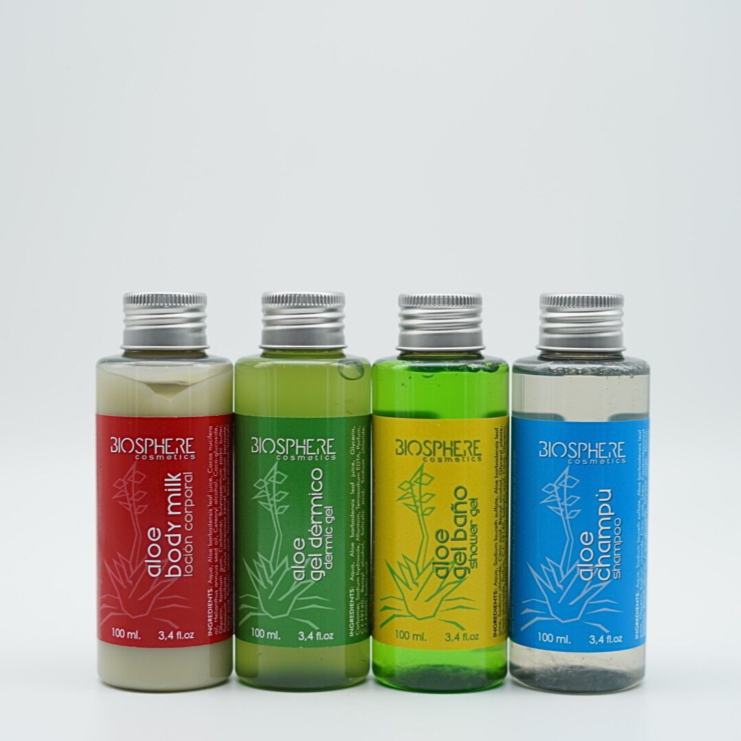 This set is composed by a body lotion with moisturising properties, a shampoo and a shower gel which provides cleanliness, softness and freshness to the skin, and a dermic gel with high quantity of aloe to regenerate, calm and protect irritated skins.