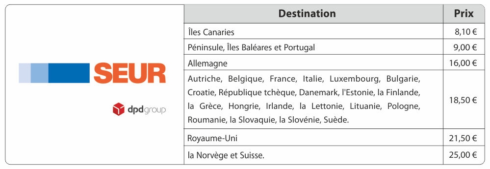 Actuellement tous nos envois sont réalisés par l’intermédiaire de SEUR/DPD.