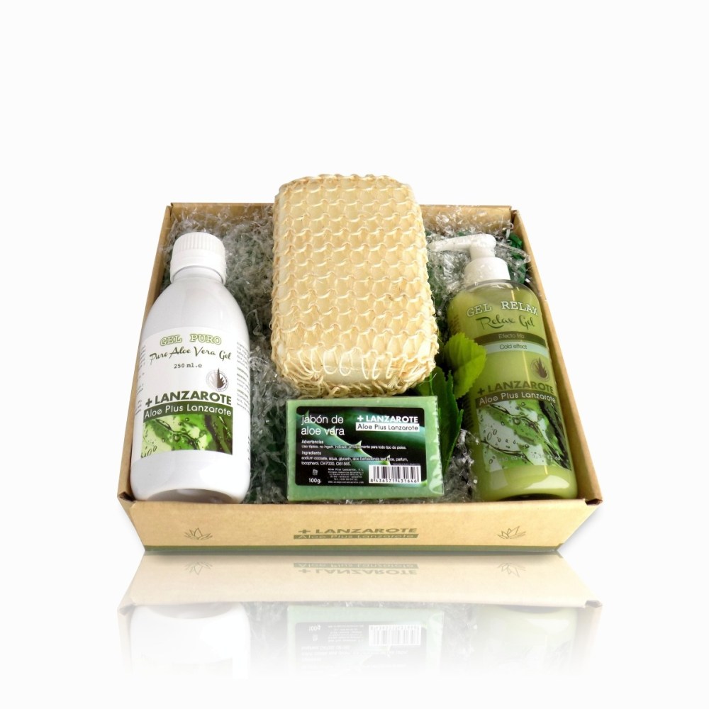 Composto da: Gel Puro aloe vera 250ml, Gel Relax effetto freddo 250ml, Sapone 100g, accessori da bagno