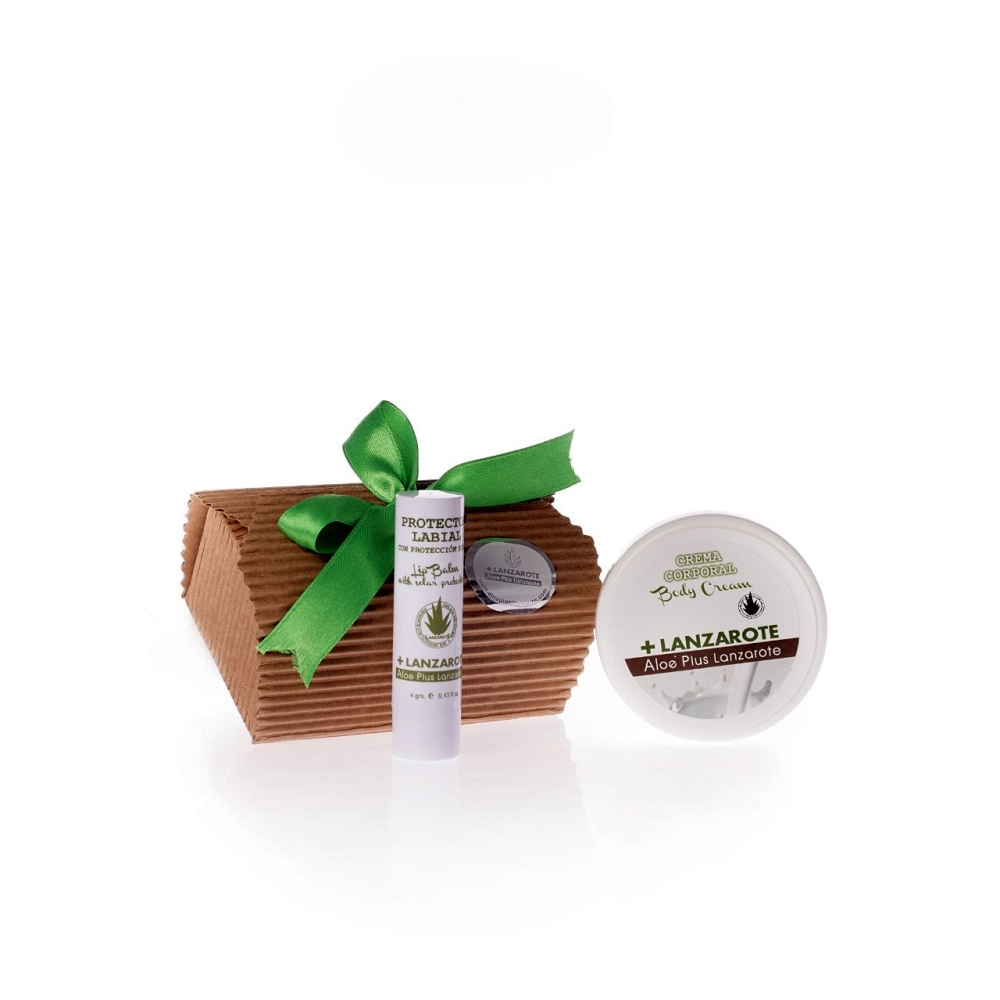 Sorprendi i tuoi ospiti con questa originale scatolina che contiene una crema per il corpo e un balsamo per le labbra di aloe vera .