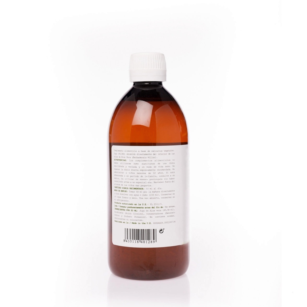 Ingredientes por 50 ml: Jugo de Aloe vera (49,50 ml), Acidulante (Acido Cítrico), Conservadores (Benzoato Sódico y Sorbato Potásico). No contiene aromas, edulcorantes ni colorantes.