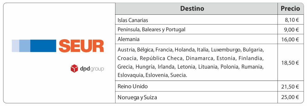 Actualmente todos nuestros envíos se realizan a través de SEUR/DPD.